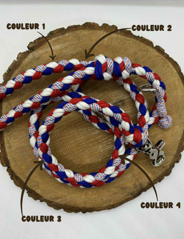 Offrez à votre chien une Canicorde alliant la personnalisation, l'esthétisme, la simplicité et la légèreté. Fabriquée en paracorde, elle mesure environ 1m20. Vous pourrez la personnaliser à vos goûts en choisissant 4 couleurs de paracorde.
